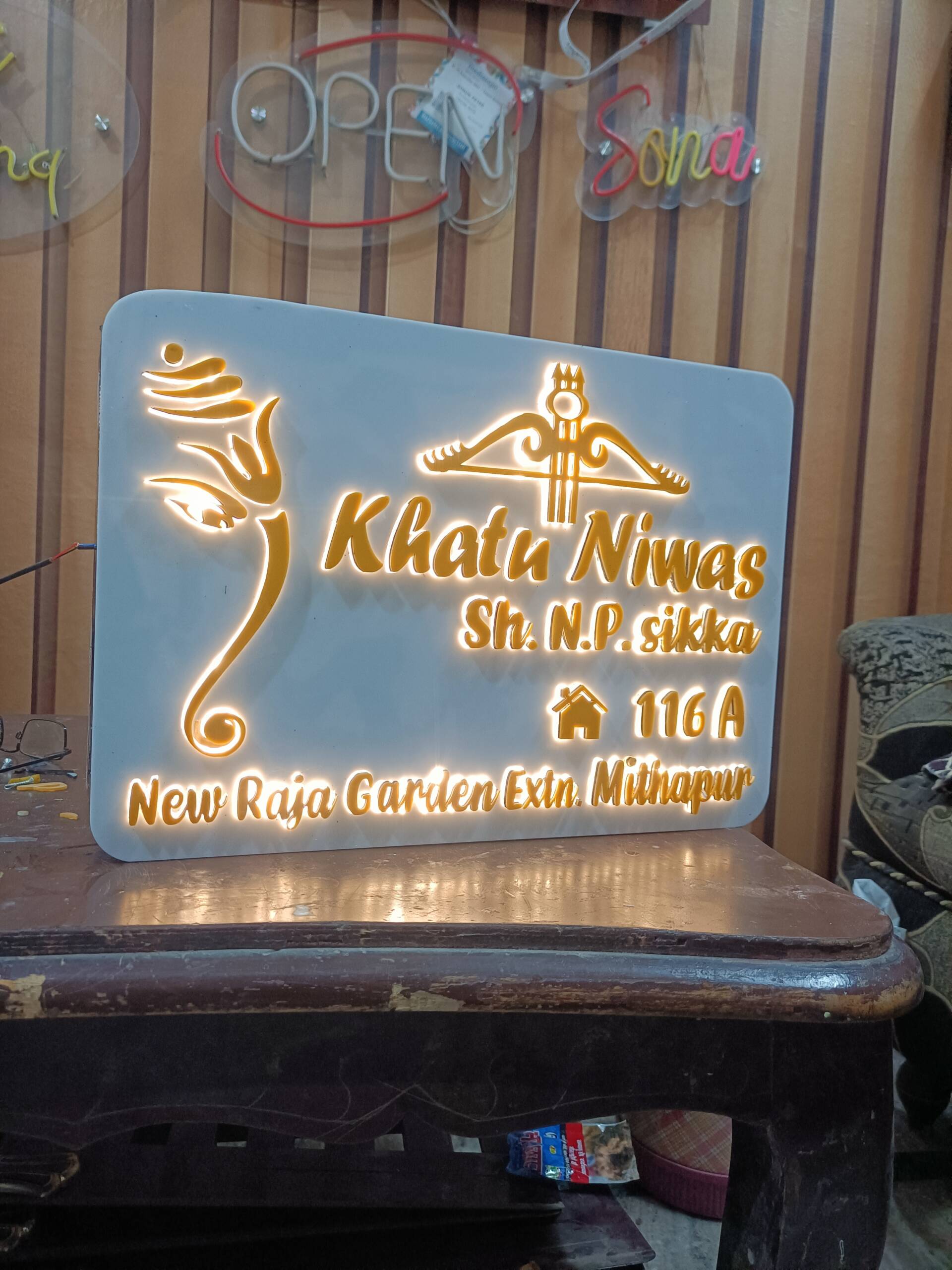 यह प्रीमियम 3D रेज्ड साइनबोर्ड सिर्फ एक नेमप्लेट नहीं, बल्कि आपके स्पेस के लिए एक शानदार आर्ट पीस है।